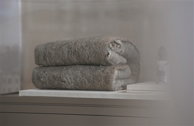 这是一床灰黑的棉絮,在古田会议纪念馆第二陈列室的文物中毫不起眼。