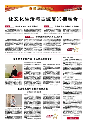 张伟莉委员认为,应以“绣花精神”持续推进大同古城的复兴与发展,加强历史街巷、文物遗址、古宅老店等的保护,开发具有大同特色的旅游品牌,以文物古建匹配周边商业定位,建设传统民俗客栈和民俗表演、特色餐饮、手工艺品等旅游服务场所,形成配套完善、具有人文特色的一体化景区和大型旅游集散中心。