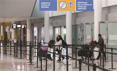 ▲ 2月22日,在加拿大多伦多皮尔逊国际机场到达大厅,入境旅客前往新冠病毒检测站。