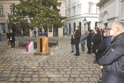 当日,维也纳2020年11月2日恐怖袭击遇难者纪念石在维也纳市中心揭幕,维也纳市长迈克尔·路德维希主持了揭幕仪式。维也纳2020年11月2日发生的恐怖袭击共造成了4人死亡,23人受伤。