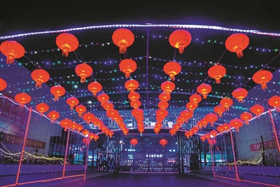 与整个城市的年味相比,我市许多小区也毫不逊色,物业人员用红灯笼、彩带、灯饰、花束、福字等年味十足的装饰品烘托出喜庆、祥和的节日气氛。夜晚,红彤彤的灯笼、璀璨的彩灯交相辉映,让整个社区的夜色温馨而浪漫。