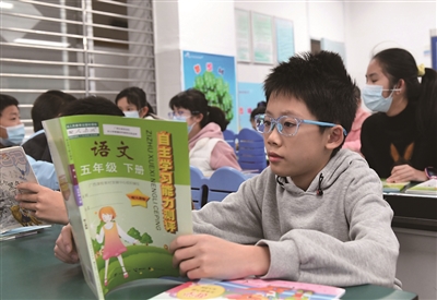 2月27日,在广西南宁市滨湖路小学,一名学生在阅读领到的新书。