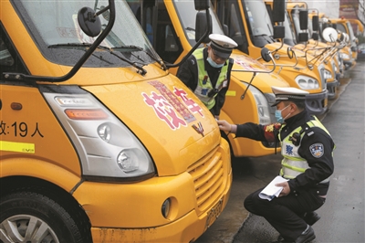 2月28日,平顶山市公安局城乡一体化示范区分局民警对辖区内的校车进行安全检查。
