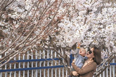 近日,山西省太原市玉泉山城郊森林公园栽植的近25万株各类樱花竞相盛开,吸引不少市民前来观赏。