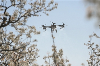目前,位于天山以南的新疆巴音郭楞蒙古自治州的梨花竞相绽放,进入梨树授粉关键时期。在新疆铁门关市一处香梨示范园里,无人机在执行高效液体授粉作业,这项技术将使梨农从繁重的授粉工作中解脱出来,提高了生产效率。