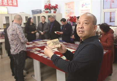 图为市连环画收藏促进会负责人田德宏展示收藏的红色经典连环画。
