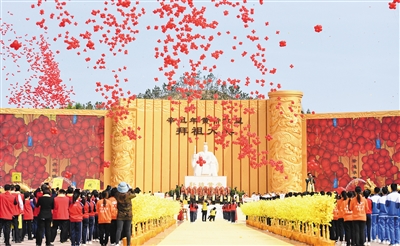 ▶ 这是4月14日拍摄的辛丑年黄帝故里拜祖大典现场。 当日,辛丑年黄帝故里拜祖大典在河南郑州举行,大典的主题为“同根同祖同源,和平和睦和谐”。
