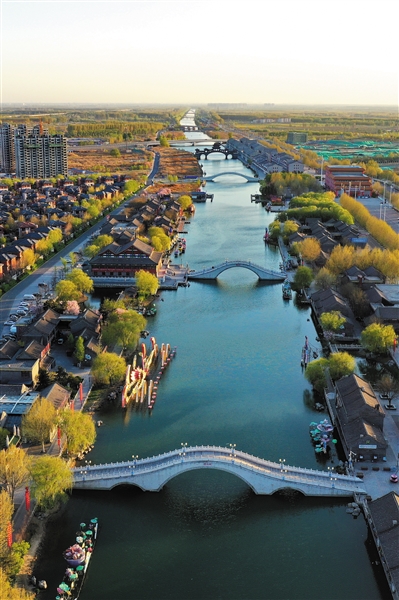 4月13日拍摄的河北省唐山市丰南区唐津运河风光(无人机照片)。