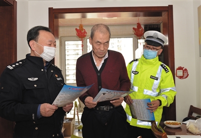 17日、18日,市公安局交警支队二大队组织民警走进柳港园A区居民家中向他们讲解防范电信诈骗和交通安全知识,引导居民拒绝交通陋习,提高防范电信诈骗意识和能力。