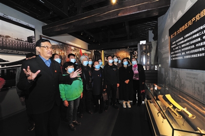 日前,平城区惠民南院社区党支部与和泰社区党支部30余名党员走进大同红色记忆博物馆,开展党史学习教育,重温党的百年历程。 本报记者 于宏 摄