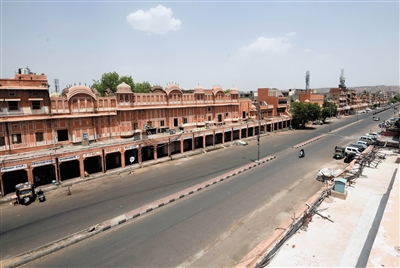 4月18日,印度著名的旅游城市斋浦尔街头空空荡荡。