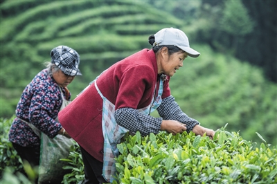 4月20日,茶农在贵州省六盘水市六枝特区落别乡鸿森茶场采摘“谷雨茶”。