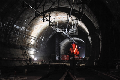 ▲4月20日,安全员在广州地铁18号线龙潭至磨碟沙区间隧道内值守。