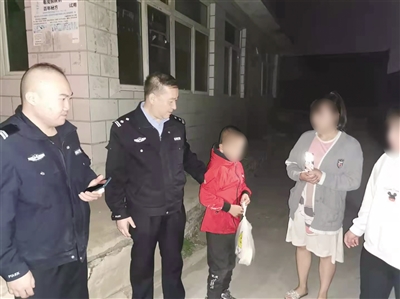 男孩吃完饭后,民警拿出纸笔试着让他写字,看能不能通过文字沟通,但尝试没有效果。随后,民警通过多方努力,终于联系到孩子的居住辖区西韩岭派出所,落实清楚小男孩是西韩岭村人。23时40分,平盛路派出所民警将小男孩送回西韩岭村家中。