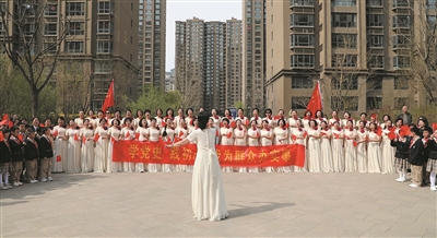 为庆祝中国共产党成立100周年,19日下午,翔龙艺术团与大同大学附属小学的同学们在水泉湾·龙园社区开展了“红心永向党”歌咏活动。