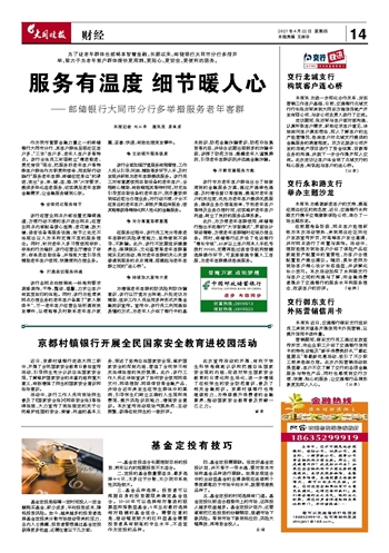 为了让老年群体也能畅享智慧金融,长期以来,邮储银行大同市分行多措并举,致力于为老年客户群体提供更周到、更贴心、更安全、更便利的服务。~~~—邮储银行大同市分行多举措服务老年客群