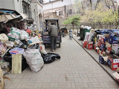 当日,记者在该小区走访发现,3、4号楼中间有人搭建起小房,木板、破被子、沙发、椅子等堆积在一起,看起来乱糟糟的。再往西20米,有人将废纸箱、废报纸、塑料瓶等堆放在道路两侧。4、7、9号楼前的绿化带被居民们用铁丝网、木棍、木板圈起来种菜、种花,也很乱。