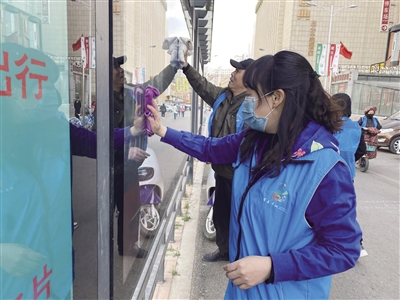 常年矗立在道路两侧的公交站台日晒雨淋,蒙上了一层厚厚的尘垢,志愿者们拿着抹布,弯下腰、踮起脚,用力擦拭着玻璃和金属边框,很快,公交站台焕然一新。