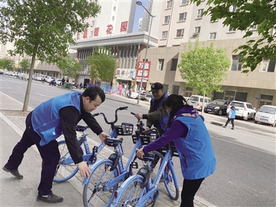 共享单车给居民提供了很大便利,但一些市民骑行后随意停放,不仅影响了市容市貌,也给道路安全行驶带来不便。为改善这一现象,大家对街道上乱停乱放的单车集中整理,让它们陆续回归原位,整齐摆放。在这期间,还车的居民看到这一幕后,都自觉地对单车摆放进行了整理。同时,志愿者们向过往群众宣传倡导“文明共享、绿色出行”的理念,希望大家养成良好的文明习惯,为美化城市环境出一份力。