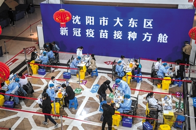 5月7日,市民在沈阳市大东区新冠疫苗接种方舱一楼接种区接种疫苗。