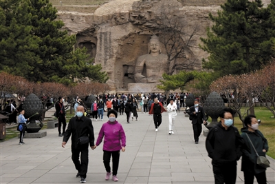 五月的大同,绿意葱茏,花香弥漫,来自全国各地的游客慕名造访世界文化遗产云冈石窟,他们被云冈博大精深的文化所折服,也被景区内“山堂水殿、烟寺相望、林渊镜景、缀目新眺”的历史风貌所倾倒。记者5日在云冈石窟景区内看到,景区绿树成荫,园区内的各种创意景观独具匠心,吸引游客流连忘返。