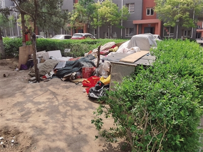记者走访还发现,小区绿化带内横七竖八停放着好几辆共享单车,还有废旧沙发、玻璃板、泡沫箱等杂物堆放在楼下角落里或随意丢弃在绿化带旁。居民刘女士说:“这些旧沙发、旧桌子,废品回收站大多数都不收,赠送也没有人要,所以很多人就把这些扔在了楼下,存在安全隐患的同时,也破坏了小区的环境。”