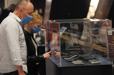 ◀ 5月12日,市民在罗马尼亚首都布加勒斯特举办的电信展览上观看通信产品。