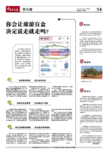 网友们认为,旅游盲盒对平台而言是一种创新的营销方式,对于消费者而言,既有了实惠,也给了一个出行的理由。不过,旅行还是需要提前做好规划,旅游盲盒打开后并不是非去不可,也有很多人买了盲盒之后放弃了。说走就走的旅行看起来潇洒,但过程中如果不确定因素太多,到了地方毫无头绪,只会白白浪费难得的假期,也很可能导致旅途不愉快。