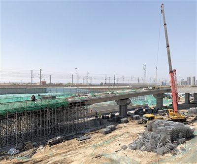 本报讯 (记者 辛雅君) 吊臂起落、机器轰鸣,焊接声、切割声此起彼伏……18日一早,大同综合客运枢纽工程施工现场一派繁忙景象,百余名工人为实现旅客在公铁间的“零距离换乘”正在奋战。