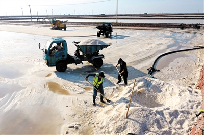 目前,山东省滨州市沾化区滨海镇辖区的60万亩盐田已进入春盐收获的繁忙时节,预计今年春季收盐到6月底结束,产量将达到50万吨以上。