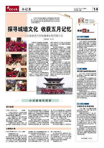 “我们大同历史上的军事战略地位不简单。”小记者们从城墙文化中见证大同的历史,从城墙内武定门、四牌楼、清远门等的含义中了解了这些名称的内涵,也通过古今对比清晰古城修复遵循的历史脉络。
