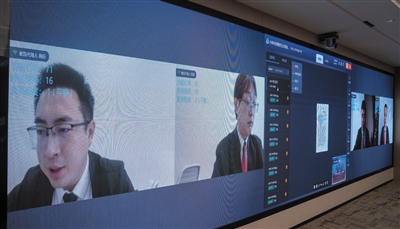 这是5月25日在成都互联网法庭庭审现场拍摄的电子显示屏。
