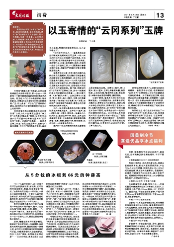 到目前为止,他已经成功打造出了30多块“云冈系列”玉牌,他说,今后,他将继续沿着这条道路“以玉言志,以玉寄情”。他希望以“玉”为媒介,让每一位拿到“云冈系列”玉牌的友人,能更加直观地了解古都大同的地域文化特色,将博大精深的北魏文化发扬光大。 (摄影 韩堃)