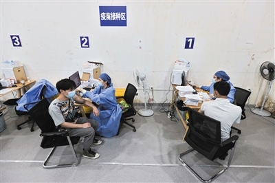 5月29日,人们在上海虹桥火车站临时疫苗接种点接种疫苗。