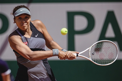 5月30日,在巴黎进行的2021法国网球公开赛女子单打第一轮比赛中,日本选手大坂直美以2∶0战胜罗马尼亚选手提格,晋级下一轮。图为大坂直美在比赛中回球。