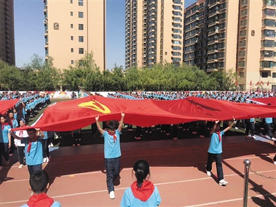 昨日9时,活动在庄严的升国旗仪式中拉开序幕。操场上,全体少先队员沐浴朝阳,整齐列队,瞩目国旗,庄严敬礼。新少先队员入队仪式结束后,全场近千名少先队员托起巨幅中国共产党党旗、中华人民共和国国旗、中国人民解放军军旗、中国共产主义青年团团旗、中国少年先锋队队旗进行“红色传递”。在一面巨大的少先队梦想墙上,少先队员们有序张贴小心愿,通过立志向、树梦想,争做新时代好队员。
