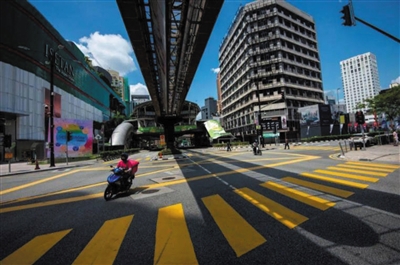 “全面封锁”实施后,记者在马来西亚首都吉隆坡市中心一带看到,路上的车辆行人明显减少,警方在一些地点设立检查点,检查来往车辆。
