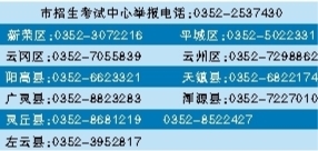 本报讯 (记者 田雁) 昨日,记者从市招生考试中心获悉,为全力打造平安高考、阳光高考,山西省招生考试管理中心面向全省设立高考举报电话,号码为:0351-4862917,同时公布全省各地2021年高考举报电话,接受社会各界对招生考试工作的监督。