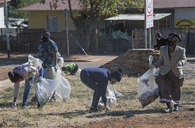 6月5日,志愿者在南非比勒陀利亚捡拾垃圾。