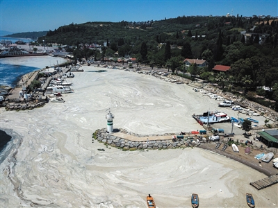 近日,一层厚厚的黏液大量浮现马尔马拉海沿岸,并有蔓延趋势,对海洋生态构成严重威胁。这些黏液俗称“海鼻涕”,是浮游生物包括藻类释放出的胶状物质。