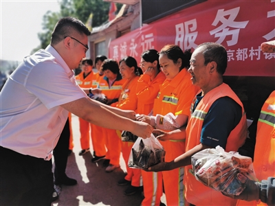 银行工作人员表示:“端午节即将来临,为了表达对环卫工的敬意,我们购买了粽子,送给一线环卫工,希望大家都来爱护环境,尊重环卫工,保护他们的劳动成果。”