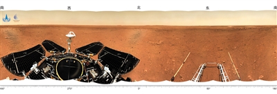 6月11日,国家航天局在京举行天问一号探测器着陆火星首批科学影像图揭幕仪式,公布了由祝融号火星车拍摄的着陆点全景、火星地形地貌、“中国印迹”和“着巡合影”等影像图。首批科学影像图的发布,标志着我国首次火星探测任务取得圆满成功。
