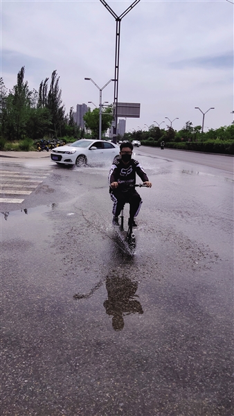 记者走访中发现,很多骑车、步行的市民看到有车辆驶来,就远远地躲闪开了,担心距离车辆太近被溅一身污水。也有些市民担心污水外溢时间久了,会不会使路面发生塌陷。