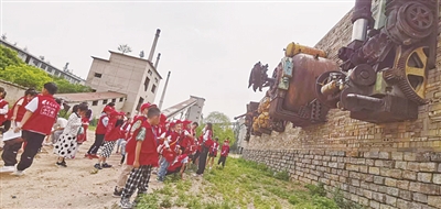 在讲解员的带领下,小记者们了解了原大同市煤气厂的创建历程,老一辈人吃苦耐劳、无私奉献的优良品质,深深打动了现场的每一位小记者。中央美院学生用淘汰的废旧金属部件创作的雕塑作品,更是吸引了小记者们极大的好奇。这些精美而寓意深远的雕塑作品,为原本枯燥的厂区增添了不少趣味。