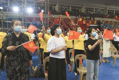 本报讯 (记者 田雁 张彩峰) 塞外盛夏,党旗飘扬,古都大同,颂歌如潮。6月28日下午,“颂歌献给党 启航新征程”大同市庆祝中国共产党成立100周年群众歌咏大会在市体育中心体育馆隆重举行,由市直机关党员干部、市政法系统干部、驻同部队官兵、市卫健系统职工、教师、少年儿童、工人、农民组成的11支合唱队、近千名演唱者齐聚一堂,用豪迈的赞歌唱出初心使命、唱出澎湃激情、唱出最美中国,为党的百年华诞献上一份深情的厚礼和浓浓的祝福。