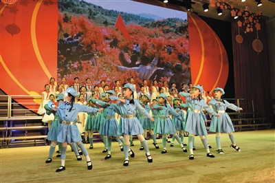 图为来自市实验小学的孩子们表演歌曲联唱《童心向党 致敬百年》。