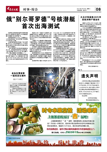 法国《海军新闻》网报道,“别尔哥罗德”号本月6日完成消磁作业,25日离开俄西北部阿尔汉格尔斯克州北德文斯克市,首次出海测试。
