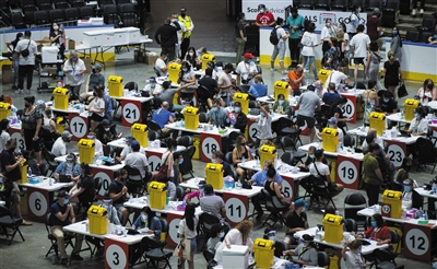 当日,多伦多举办新冠疫苗接种日活动,由400名工作人员在市中心设立的大型新冠疫苗接种中心为约25000名预约民众接种疫苗。