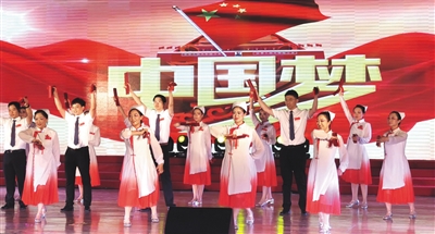 “唱支山歌给党听,我把党来比母亲……”文艺演出在婉转悠扬的《唱支山歌给党听》中拉开帷幕。诗歌朗诵《党旗飘扬》《党的礼赞》深情回顾党的光辉历程,热情讴歌党的丰功伟绩;二胡独奏《十送红军》旋律婉转优美,表达了人民对红军的深厚感情和对革命胜利的强烈期盼;歌曲《天耀中华》饱含对国家和民族的热爱与祝福。演出结束,全场观众挥舞党旗,共同唱响《没有共产党就没有新中国》。