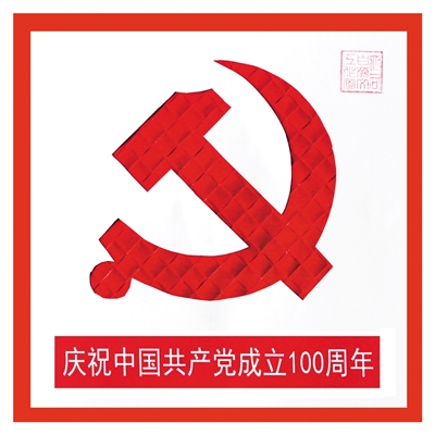 本报讯 (记者 张彩峰) 党徽纸编、党徽十字绣、红色历史题材的剪纸……连日来,我市多位手工艺人用精心制作的主题作品祝福党的百年华诞。